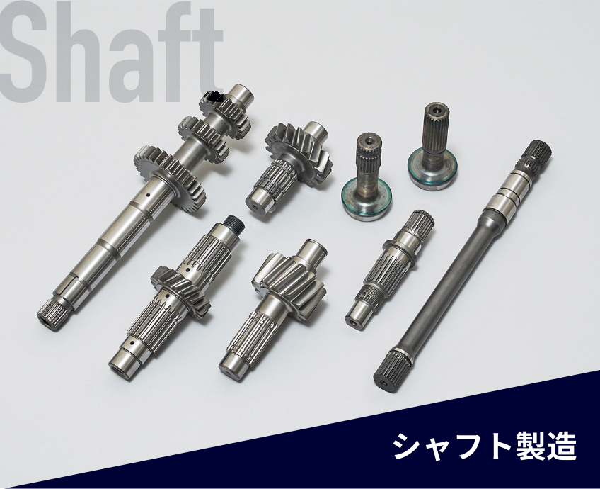 建機のパワーを生み出す油圧モーターに使われる駆動軸、減速機のサンギヤ・プラネタリーギヤを製造しています。シャフトスプラインには特殊なクラウニング加工、ギヤも同様のクラウニング加工をほどこした製造をしています。